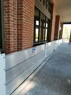 The luxury Caroline Apartments are located on the Ashley River waterfront in the popular WestEdge district of Charleston. In 2018, Floodproofing.com completed installation of Flood Logs to a protection height of 3 feet on 12 openings spanning 450 linear feet, including one custom array over 330 linear feet.