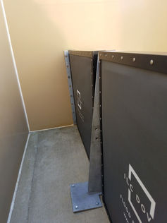 Flex-Cover® Door functions as a dry flood barrier installed at door and other building openings. Permanently installed wall anchors facilitate rapid deployment prior to a pending weather event.